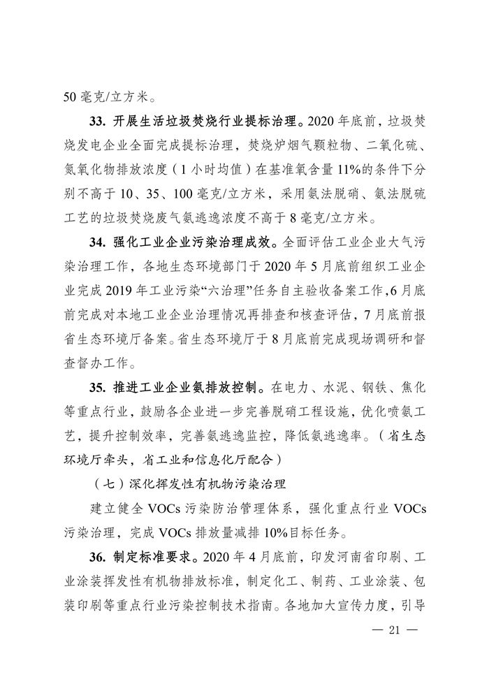 5、2020年4月底前,完成《河南省工業爐窯大氣污染物排放標準》修訂工作,推進工業爐窯提標改造。
