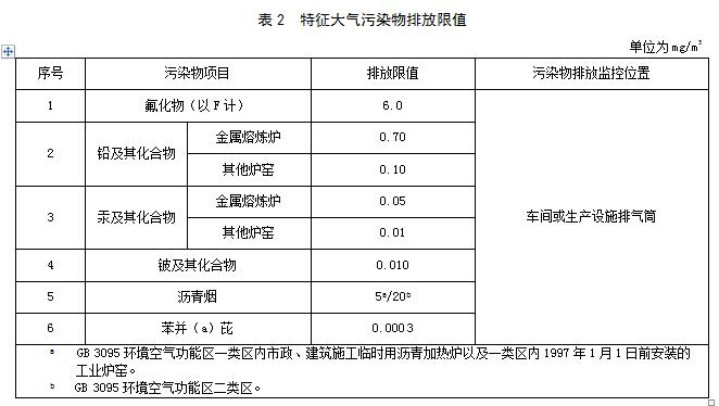 工業爐窯大氣污染物排放限值按表1、表2規定執行。