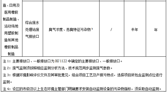 表1橡膠制品工業排污單位廢水排放監測點位、監測指標及最低監測頻次