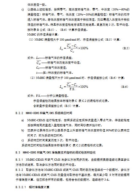 9.3.2.1非甲烷總烴技術(shù)指標(biāo)要求見本標(biāo)準(zhǔn)表1,操作步驟和計(jì)算公式按照HJ1013中7.2現(xiàn)場(chǎng)檢測(cè)要求和方法及本標(biāo)準(zhǔn)附錄B相關(guān)要求執(zhí)行。準(zhǔn)確度驗(yàn)收時(shí),待測(cè)NMHC-CEMS與參比方法同步對(duì)現(xiàn)場(chǎng)排放非甲烷總烴進(jìn)行測(cè)量。參比方法可選用HJ38,也可選用國(guó)家制訂發(fā)布的其它非甲烷總烴測(cè)試方法標(biāo)準(zhǔn)。