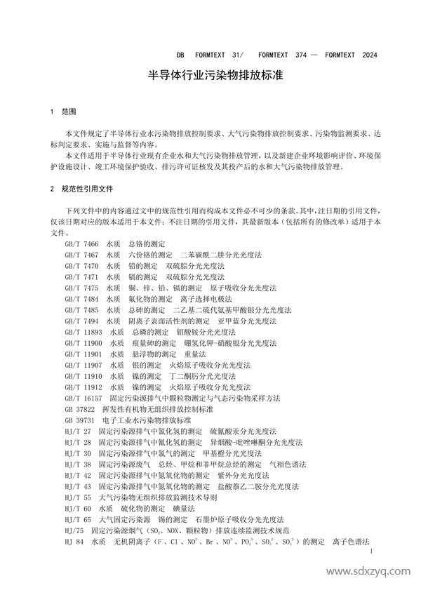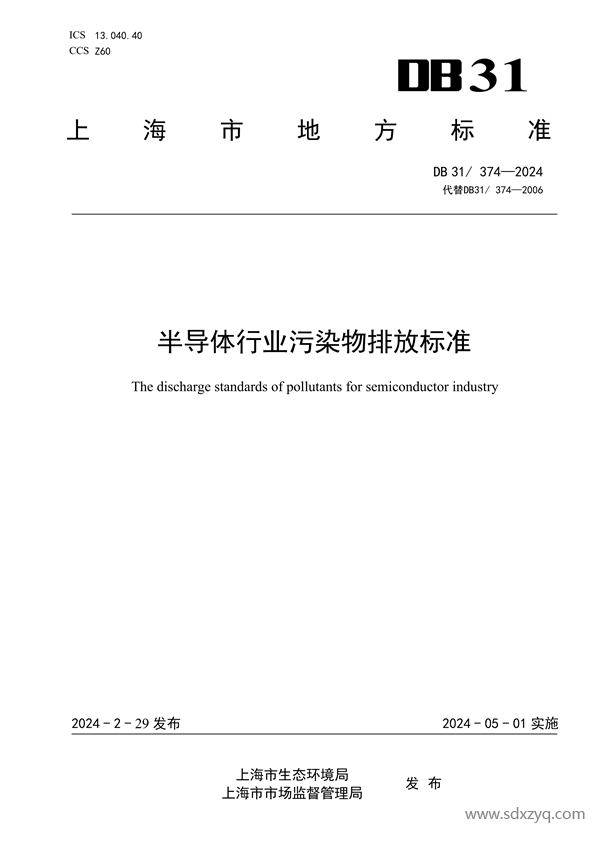 經(jīng)上海市人民政府批準,《半導體行業(yè)污染物排放標準》(DB31/374-2024)為上海市地方污染物排放標準,現(xiàn)予以發(fā)布。2024年5月1日起實施。