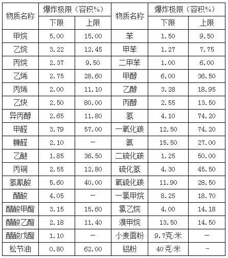 這是由于前者的可燃物濃度不夠,過量空氣的冷卻作用,阻止了火焰的蔓延;而后者則是空氣不足,導致火焰不能蔓延的緣故。常見物質(zhì)的爆炸極限如下,僅供參考: