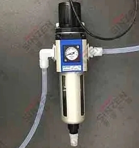 3、因壓縮空氣的品質很差,含水含油很大,原先的空氣過濾器不能滿足過濾的要求,樣氣中含水率高與其也是有關系的,而且油份容易附著在探頭上造成積灰,影響抽氣量,嚴重時甚至無法抽下來空氣。因此我們在取樣探頭反吹壓縮空氣管道上加裝氣液分離器,該氣液分離器可以過濾掉壓縮空氣中的水份和油份,不讓探頭反吹時將壓縮空氣中的水和油吹入附著在取樣探頭內。