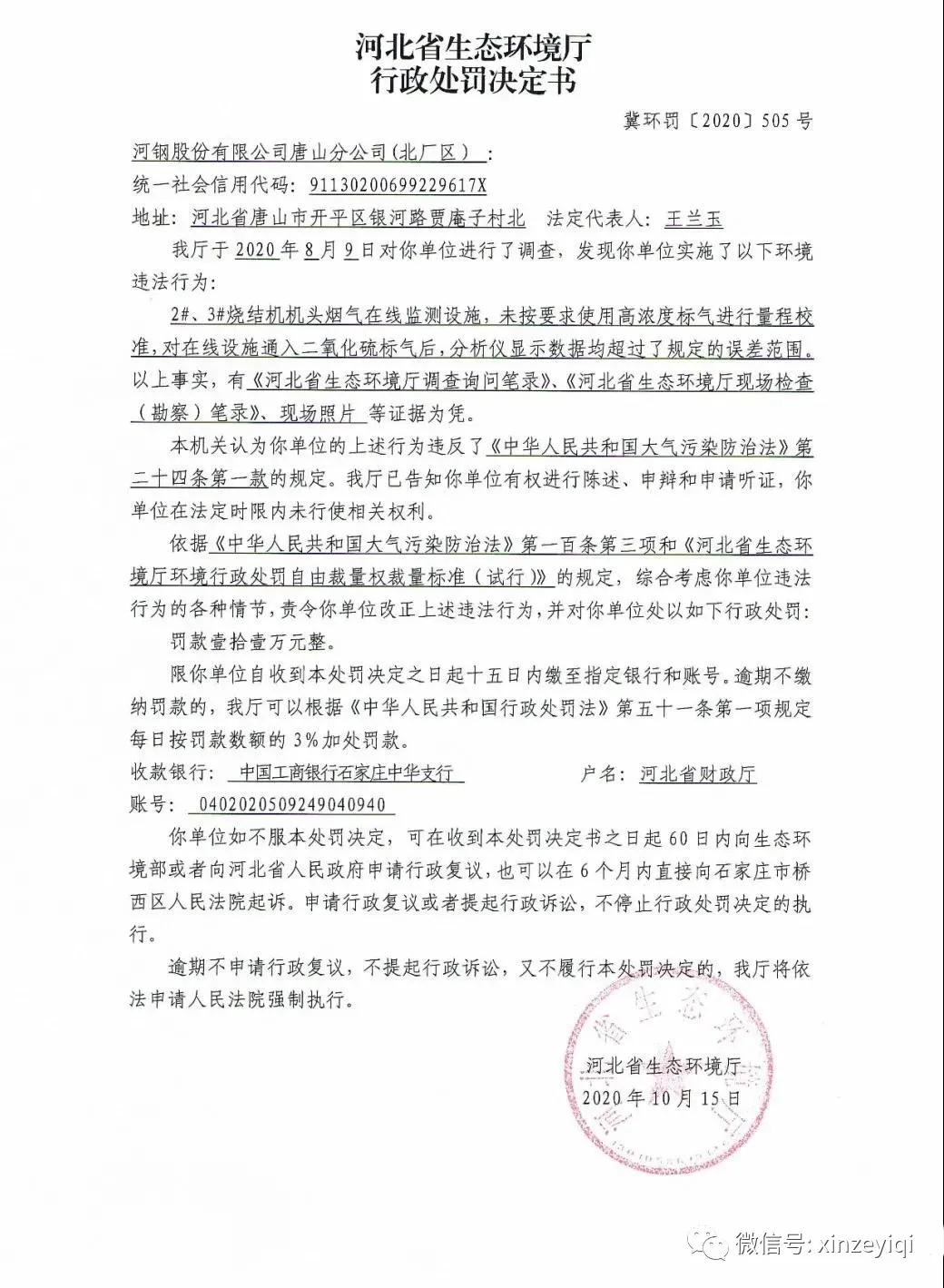 近日,河北省生態環境廳公開了2020年執法檢查中發現的幾起關于在線監測行政處罰決定書,從處罰決定書中看出多數是由于CEMS校準或通標氣測試不滿足技術指標要求,其中二氧化硫全程通標氣測試不滿足要求的情況尤為突出,以下是河北省生態環境廳對相關企業的行政處罰決定書。